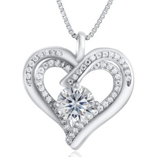 Platinum Plated 1CT Moissanite Heart Pendant Necklace For Women